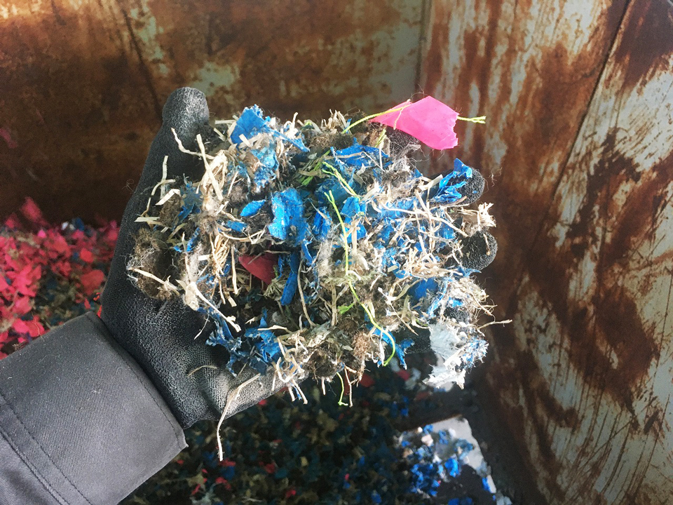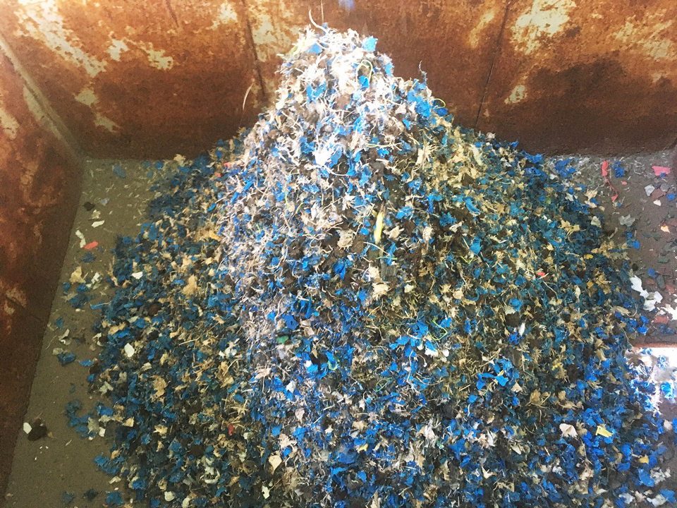 一軸破砕機 DS4080 廃プラ 破砕後